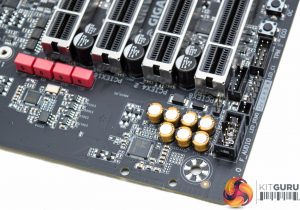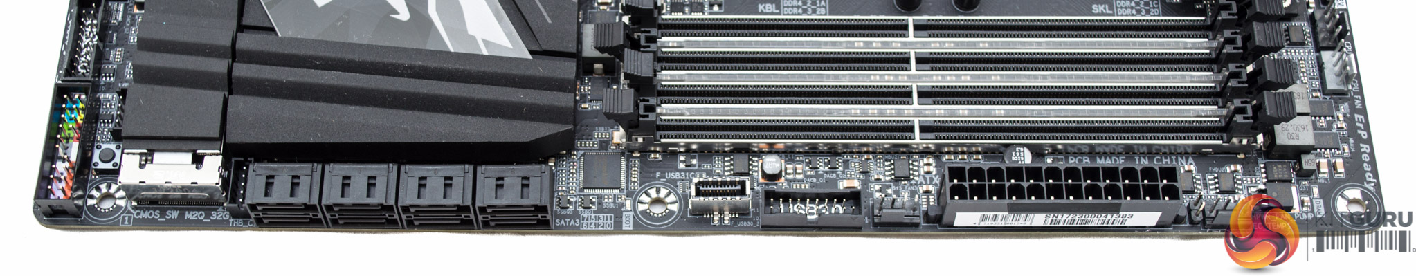 Running down the chipset-side of the motherboard there are plentiful fan headers , a USB 3.1 front panel connection, eight SATA III and a clear CMOS button.