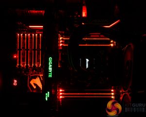 RGB lighting is spread across the motherboard – between all memory lanes, the PCIe slots, the chipset heatsink, the rear I/O shield and the audio area. This gives most users a great deal of tweakability, we'll cover the RGB software in more detail in the software segment. There are not “standby” LEDs by default, though which can make it difficult to tell if the motherboard is on.