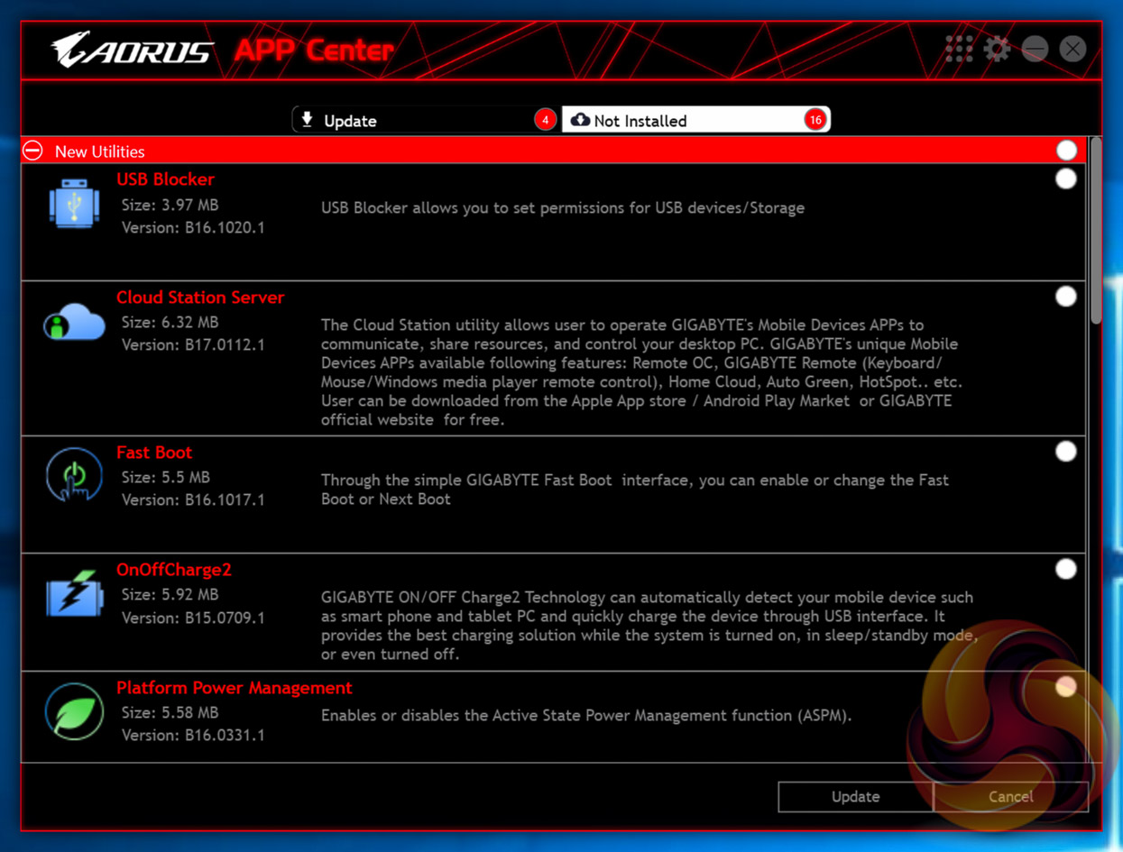 Gigabyte's App Center is the best of the bunch as far as the unification of the vendor software ecosystem is concerned. App Center tracks all installed Gigabyte or supported third-party applications and allows you to install any Gigabyte or supported third-party application with a single click.