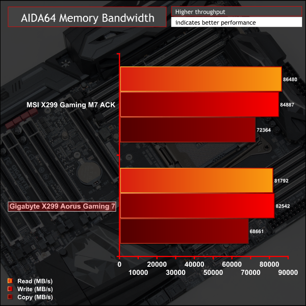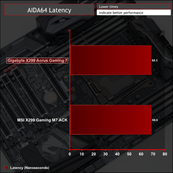 Synthetic memory throughput for Gigabyte's motherboard was slightly behind that of MSI, to the tune of around 7.5 per cent, while latency was near identical.