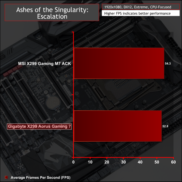 Ashes of the Singularity: Escalation is a Sci-Fi real-time strategy game built for the PC platform. The game includes a built-in benchmark tool and was one of the first available DirectX 12 benchmarks. We run the CPU-focused benchmark using DirectX 12, a 1080p resolution and the Extreme quality preset.
