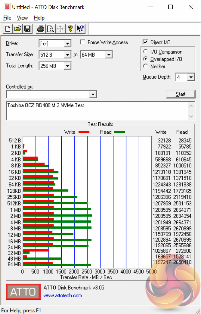 The ATTO disk benchmark is a Windows-based utility for testing storage performance of any storage drive or controller. We use the default benchmark setup.