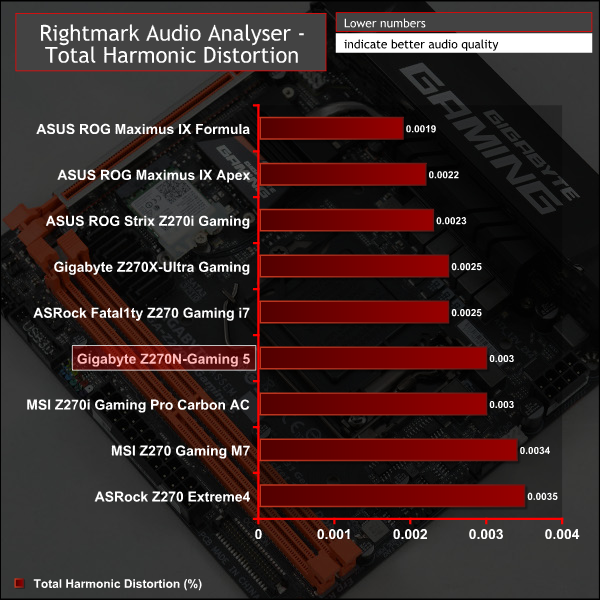 Rightmark Audio Analyser is a freeware benchmarking utility designed to objectively test the performance characteristics of audio solutions. We setup a line-in line-out loop and execute the record/playback test before generating the results report you see below. A sampling mode of 24-bit, 192 kHz was tested.