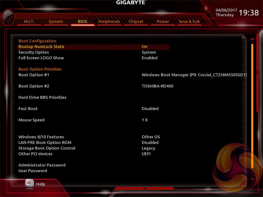 The BIOS tab delivers the main boot options and should probably be renamed to Boot, or something similar.
