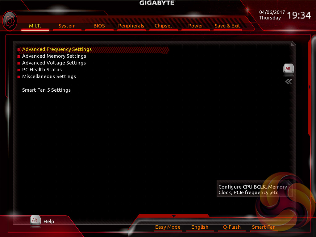 M.I.T, Motherboard Intelligent Tweaker, is the section of the Gigabyte UEFI where the performance tuning parameters are found. In here you will find power, voltage, turbo and frequency settings for the CPU, DRAM and chipset.