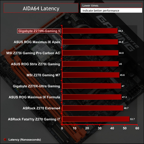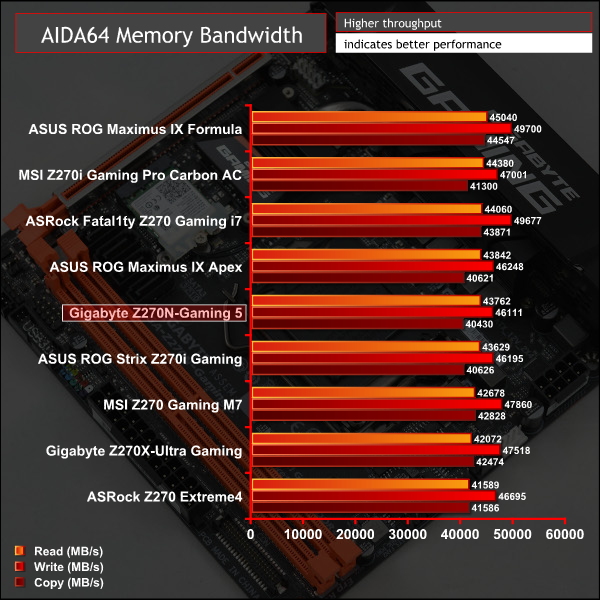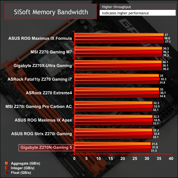 Memory bandwidth was roughly in-line with the other motherboards we tested that had only two DIMM slots available.