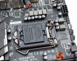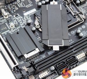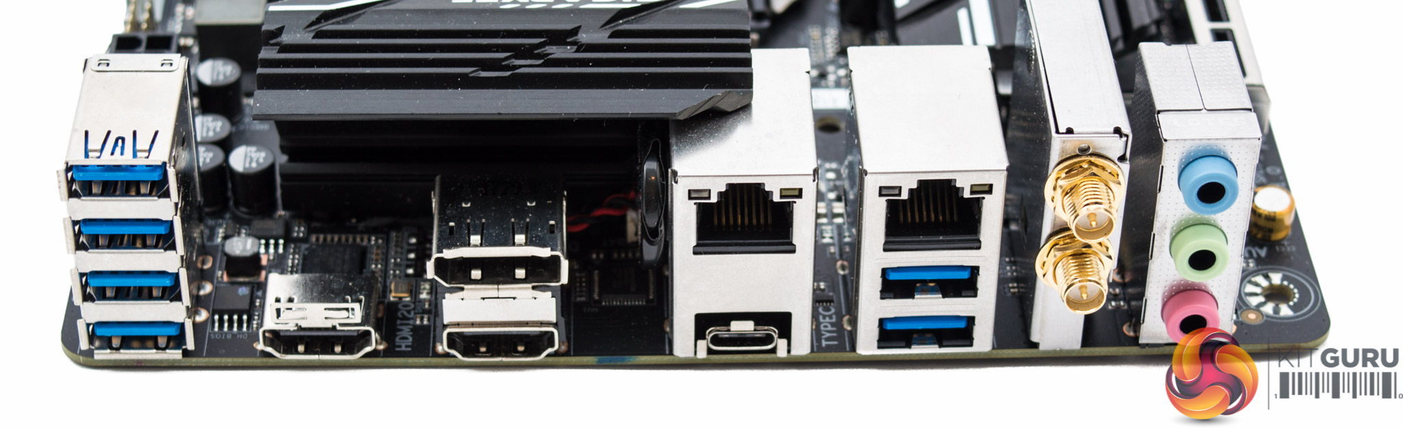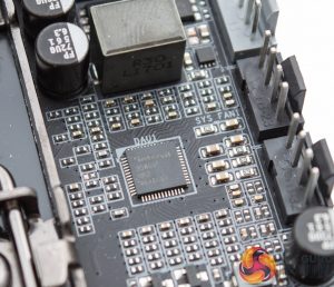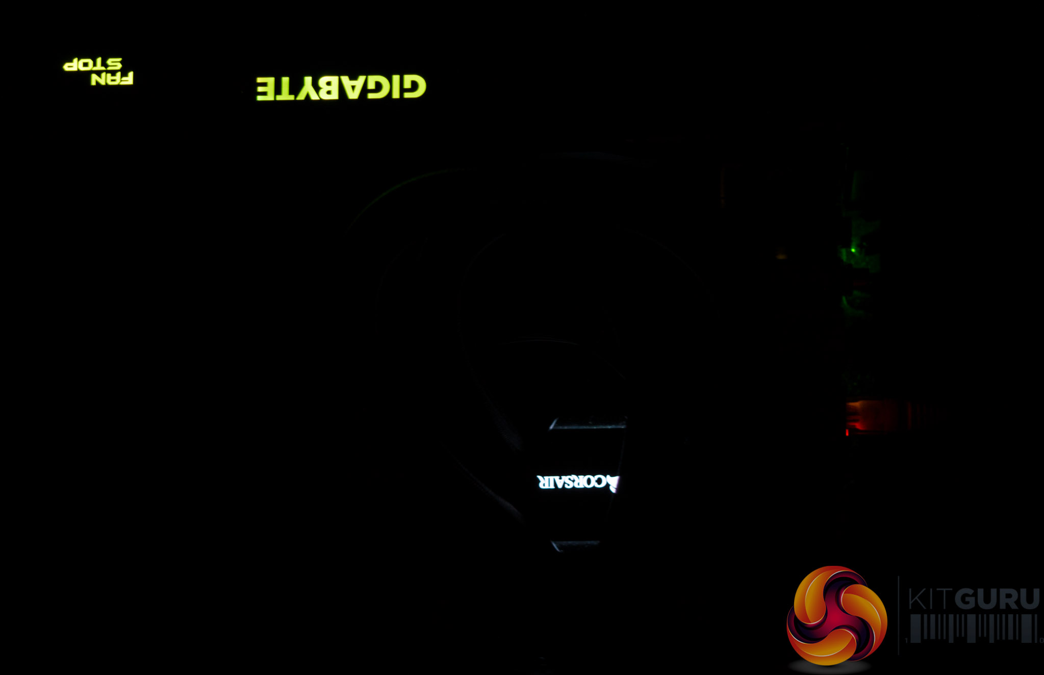 Some onboard LED lighting is provided on the underside of the motherboard around the audio PCB separator but it is feeble in brightness at best and hardly visible against the LEDs from the Gigabyte GTX 1080 G1 Gaming graphics card and Corsair H100i v2 CPU cooler that comprise the KitGuru test bench.
