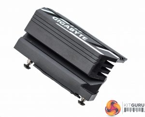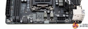 The CPU vCore VRM is cooled by a black aluminium heatsink and a thermal pad. It's a compact design so it shouldn't be expected to sustain heavy overclocks for any extended duration.