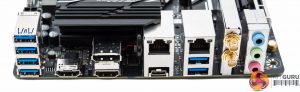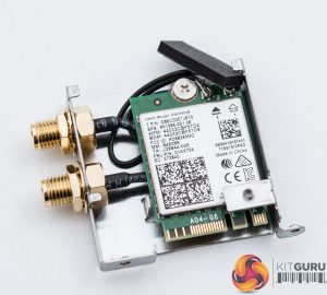The rear I/O WiFi unit is an Intel Wireless-AC 8265NGW module, which is a two-transmitter and two-responder unit with Bluetooth 4.2 that connects to the provided external antenna.
