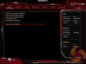 The setup is functionally fine but the fact the user has to keep tabbing back and forth between the various menus of the M.I.T makes the tweaking process a little tiresome. Gigabyte could still consider a more user-friendly layout that involves less menu management by simply presenting more options on each page with less nested sub-menus.