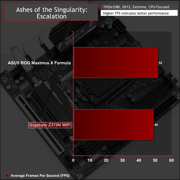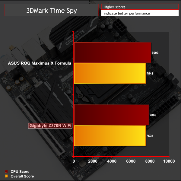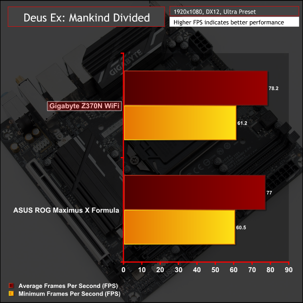 Gaming performance favoured the ASUS motherboard in two out of three tests but by slim margins that can be put down to margin of error and GPU boosting variation.