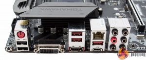 The rear I/O is reasonably well balanced with six USB ports spanning all the recent generations (2.0, 3.0, 3.1) & Type-C, a PS/2 combo, a couple of display outputs, Gigabit LAN and six gold-plated audio jacks. Note that there is no digital audio available for this motherboard, only analogue.