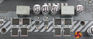 The PWM controller for the CPU and SOC VRMs is the Richtek RT8894A which can support up to 4+2 phases. MSI uses the entire complement with 4 phases for the CPU and 2 phases for the SOC.
