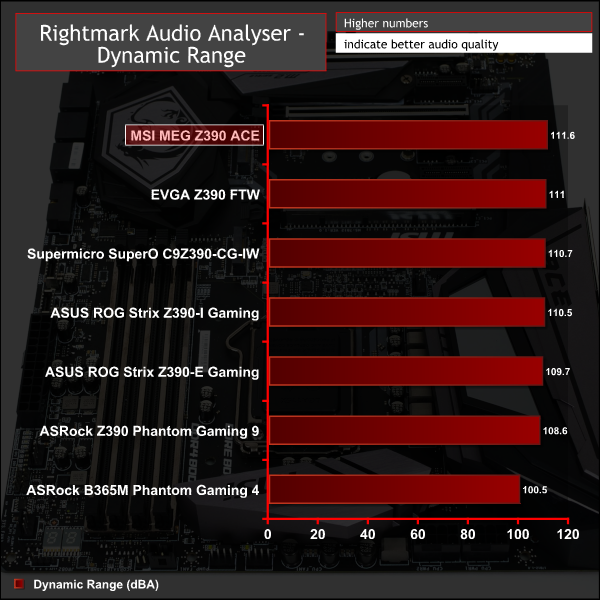 Audio performance is very good across the suite of Rightmark tests, helped by the Realtek ALC1220 codec, ESS DAC and high-quality audio capacitors.