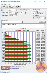 The ATTO disk benchmark is a Windows-based utility for testing storage performance of any storage drive or controller. We use the default benchmark setup.