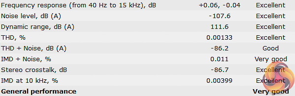 Rightmark Audio Analyser is a freeware benchmarking utility designed to objectively test the performance characteristics of audio solutions. We setup a line-in line-out loop and execute the record/playback test before generating the results report you see below. A sampling mode of 24-bit, 192 kHz is tested where available. If unavailable the closest alternative operating mode available is used and clearly marked.