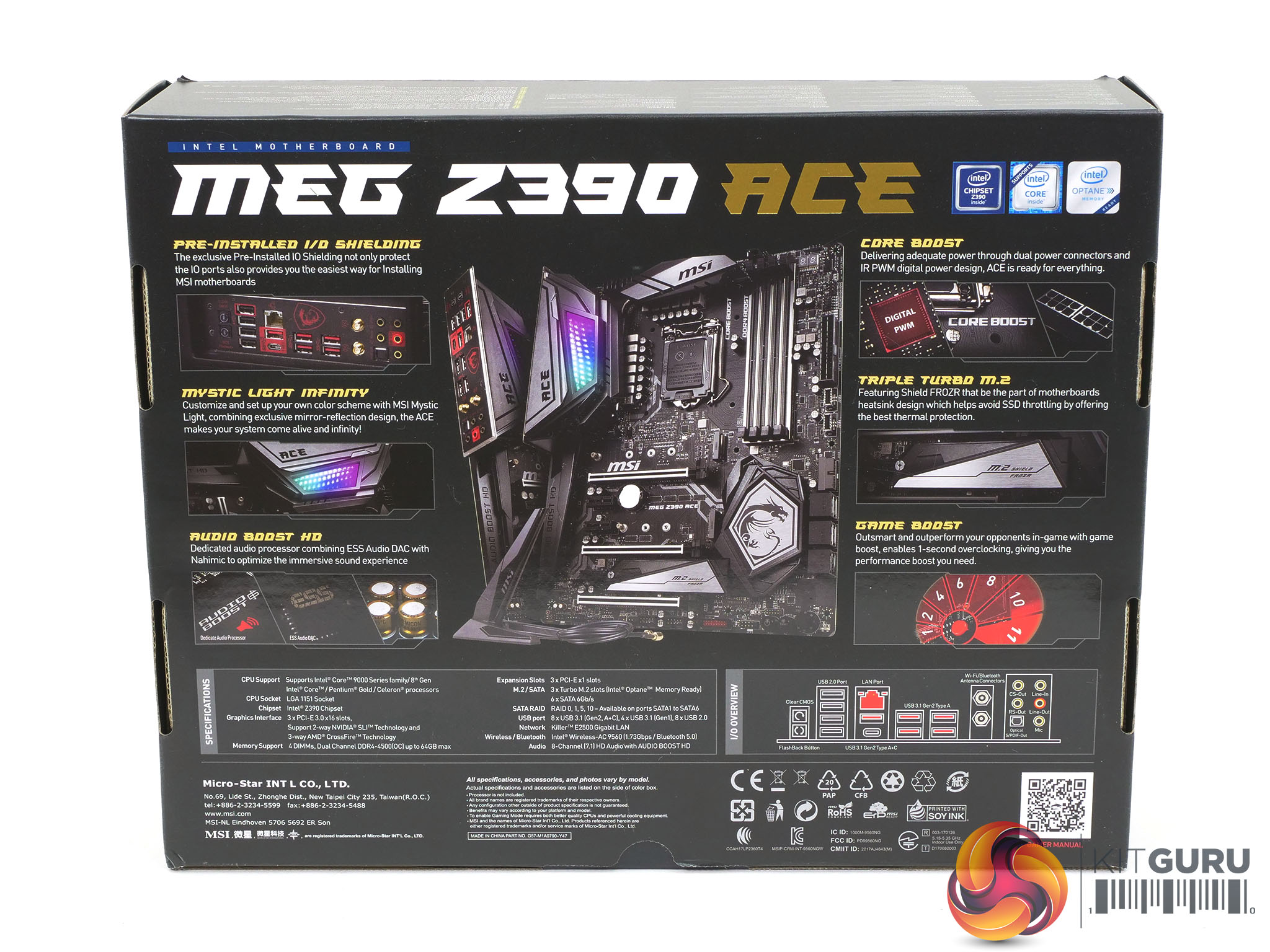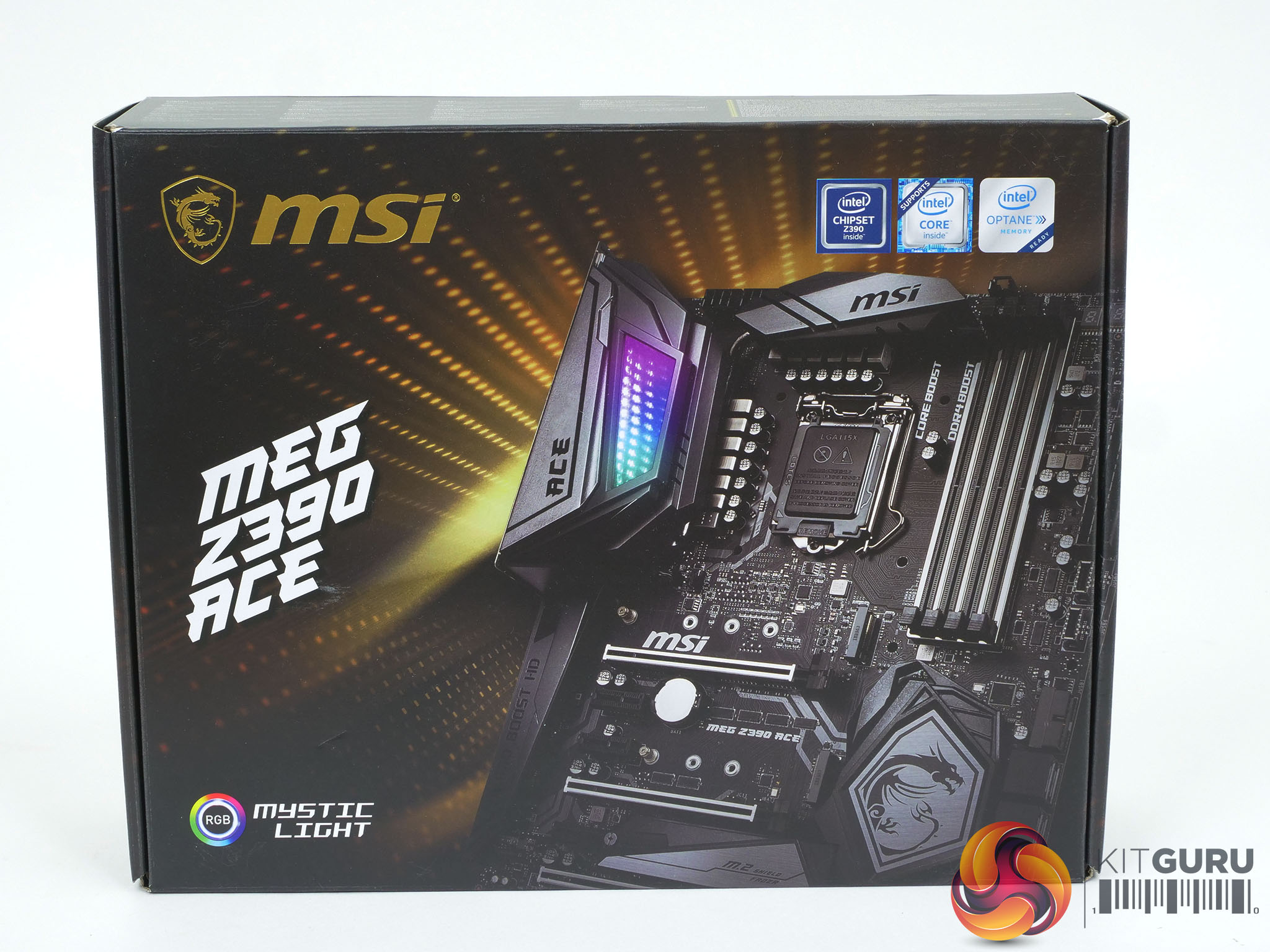The packaging for any product always gives an insight into the features the manufacturer deems most interesting to the target audience. With the MSI MEG Z390 ACE the digital power design, triple M.2 and RGB lighting are all highlighted on the box.