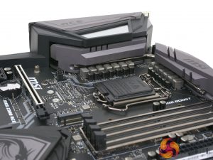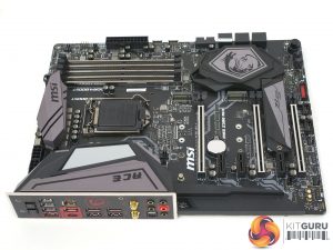 The onboard RGB lighting provides a splash of colour to the otherwise neutral design, although there is just a single RGB zone in the rear I/O shroud which is fairly limited compared to some other motherboards in this class. However, for the overclocking audience it can be argued that RGB lighting is of less significance.