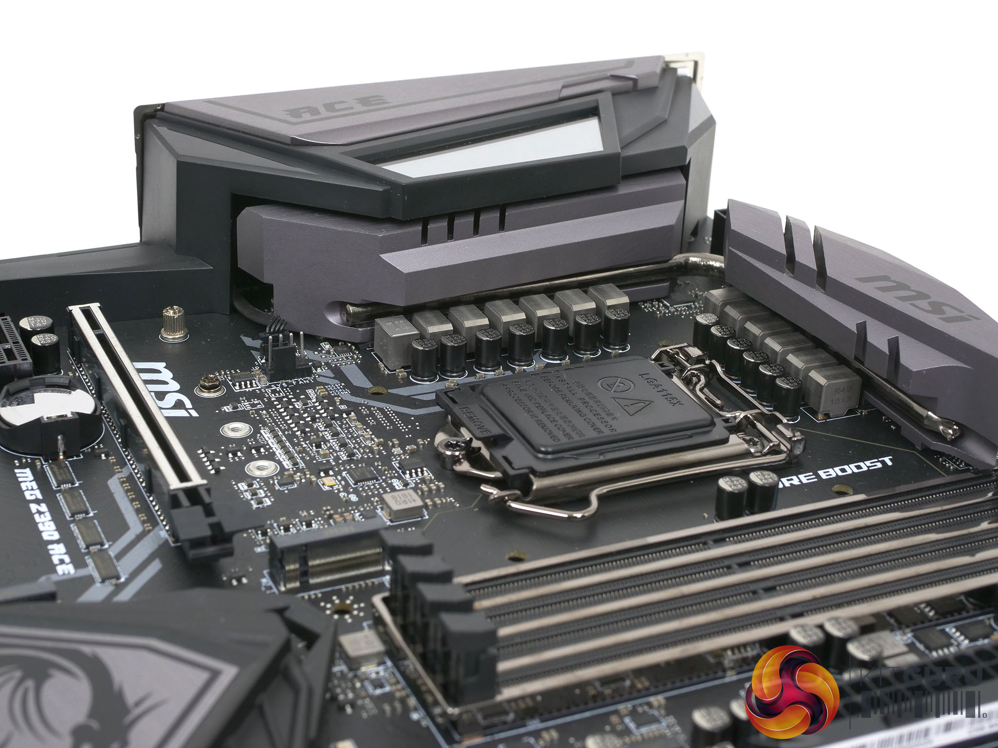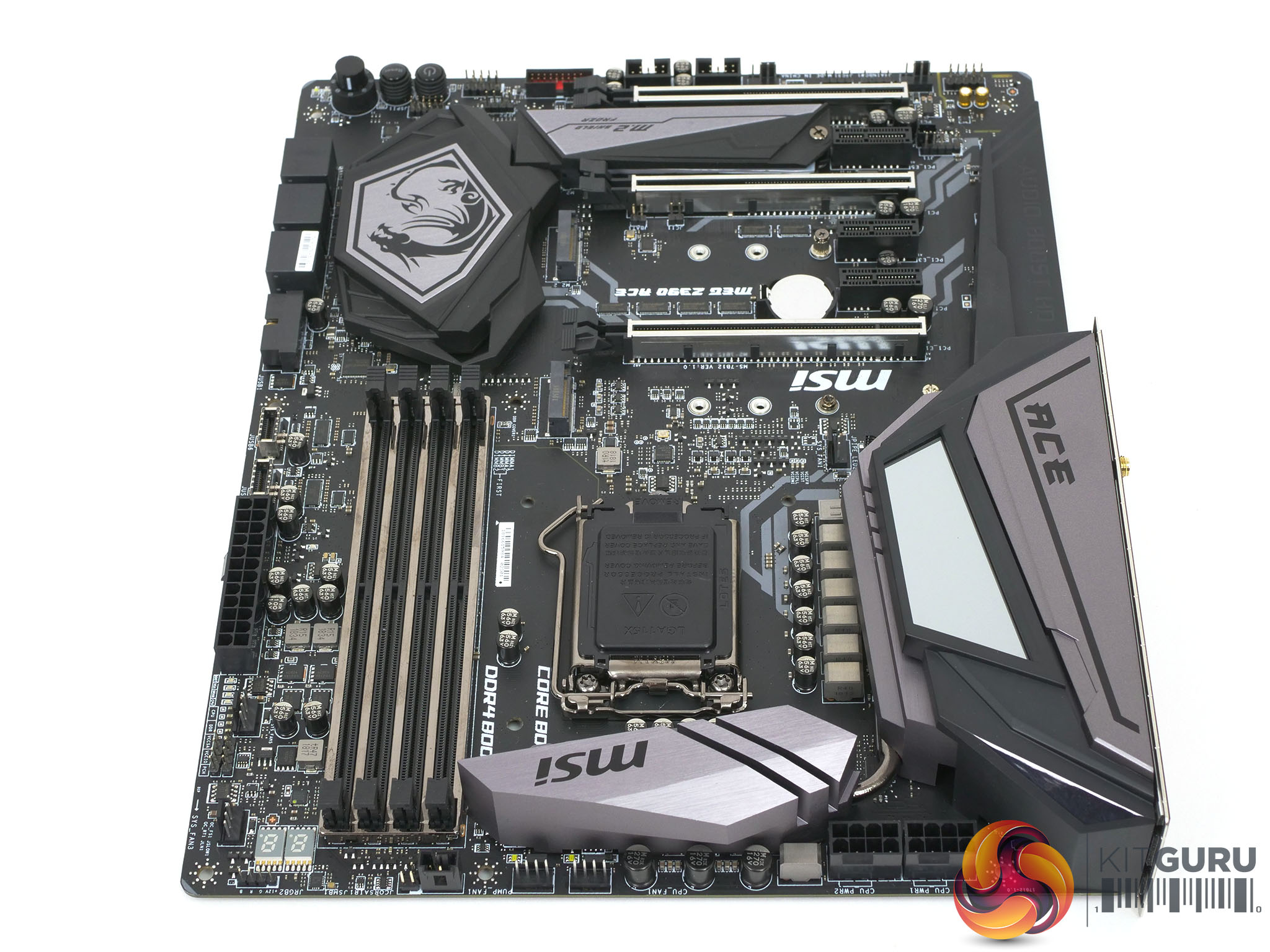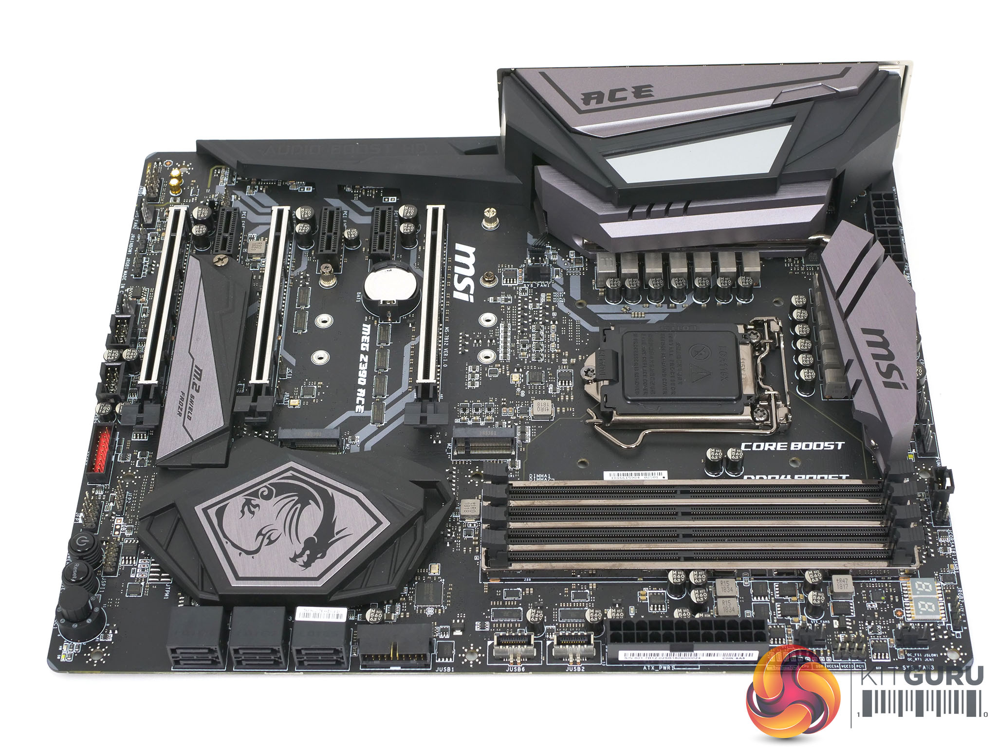 The MSI MEG Z390 ACE is designed to be as clean and colour-neutral as possible with the primary colours being black and grey.