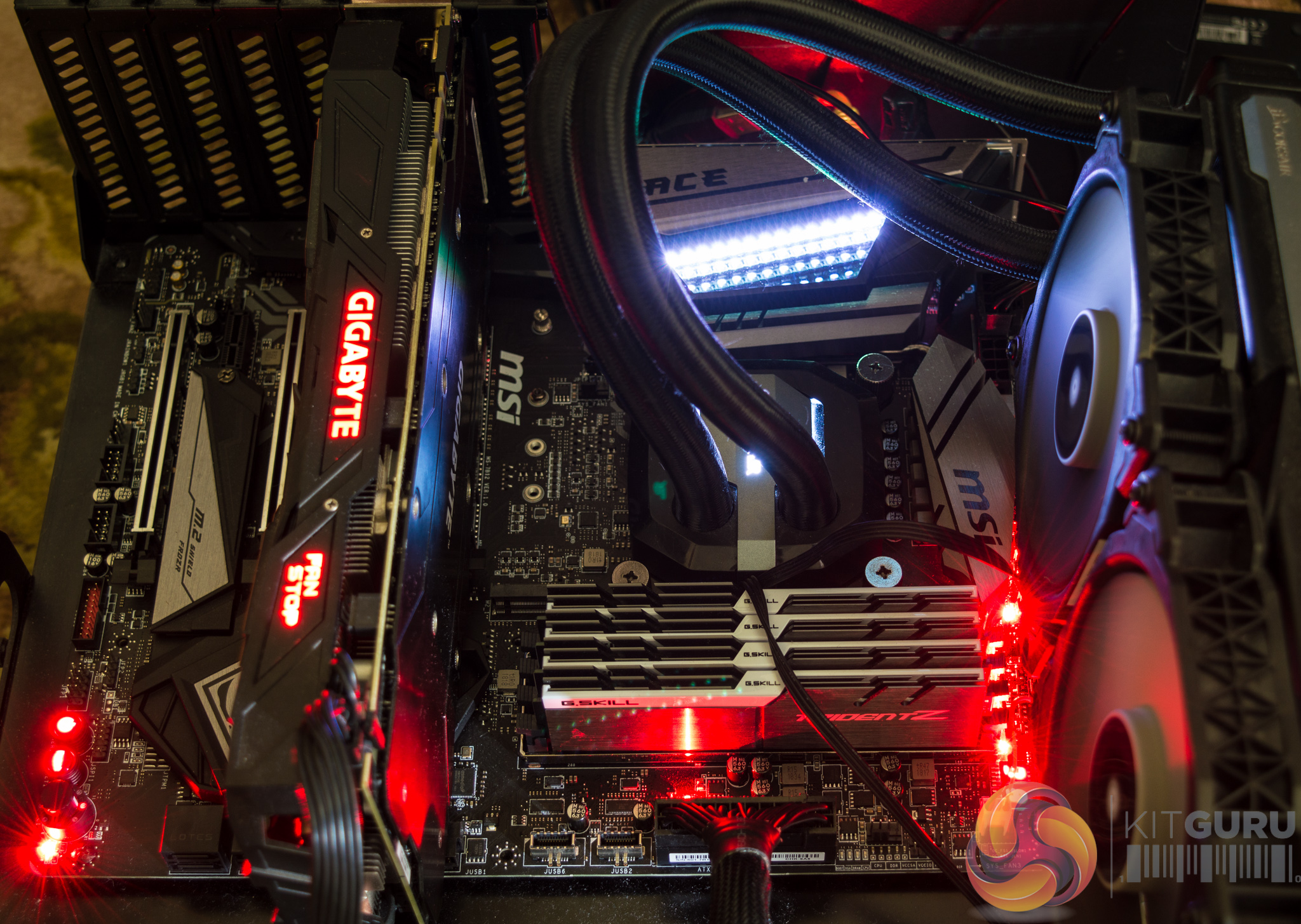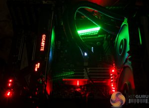 The colour theme that the user might choose to go with is potentially interrupted by the large number of non-configurable red lights scattered across the motherboard.