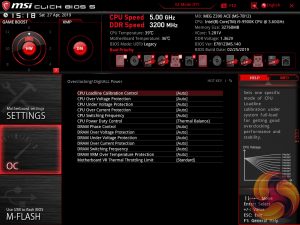 The range of LLC options is extensive too, with Mode 1 (most aggressive) to Mode 8 (least aggressive) as well as an option for No overvolting, which is even less aggressive on the voltage than Mode 8. From our testing with override voltages, mode 3 ensures no droop from what is programmed in the BIOS, if anything it rises a little higher than what's specified, while mode 4 ends up being slightly under. The visual diagram MSI provides within the BIOS is useful in ascertaining the approximate behaviour of each CPU LLC mode.