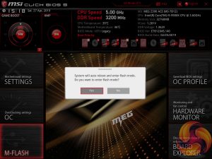 M-Flash forces you to reboot to enter the flashing process is somewhat tedious though in practice all motherboard vendors will eventually reboot multiple times during the flashing process to apply the updates. However, you can’t view any of the M-Flash options or interface without conducting a reboot, whereas most vendors will at least allow you to navigate around in the interface, see what options are available to you and even start the flash, before a reboot is eventually required.