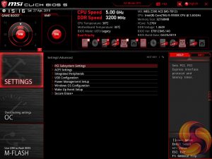 Settings has a number of useful settings for booting and integrated peripherals. The Advanced entry has the most sub menus and options to play with including the ability to toggle various different compatibility modes for storage and USB devices.