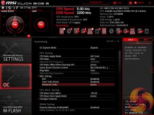 The real substance of the BIOS for most users is found in the OC tab where frequency and voltage settings related to the CPU, DRAM and other System components are found. It is advisable to toggle the “OC Explore Mode” into Expert straight away since the Normal mode does hide some useful options.