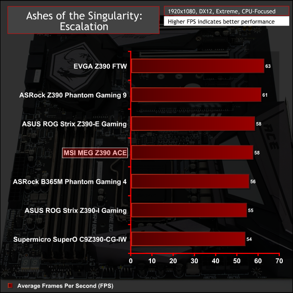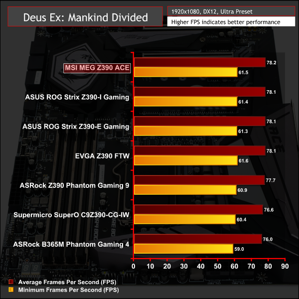 Gaming performance was standard fare for a Z390 motherboard.