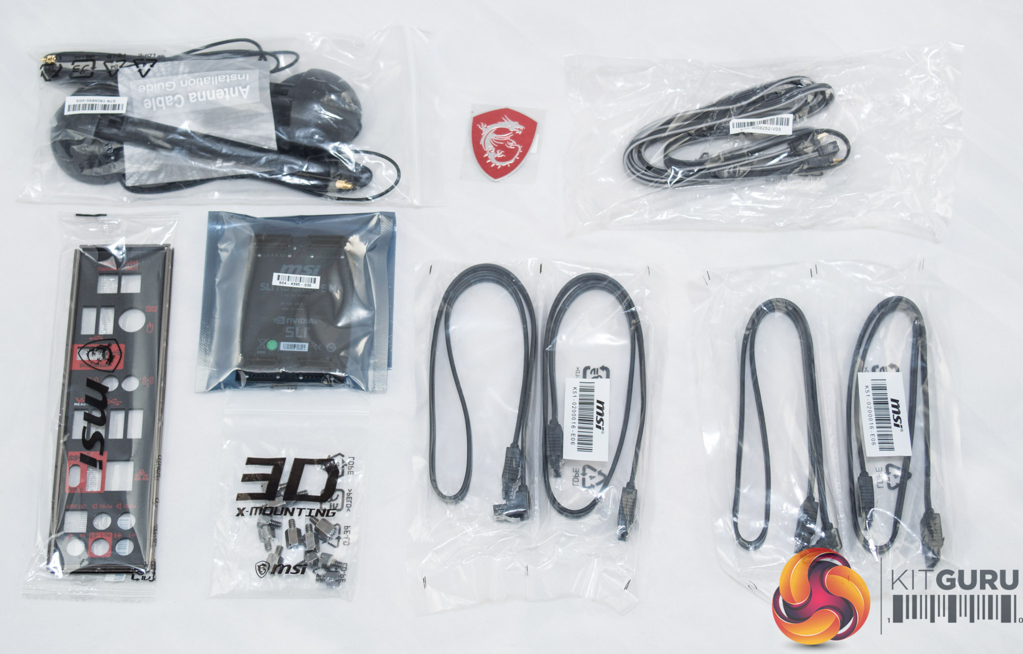 The documentation bundle includes guidance on memory installation which varies depending on the CPU as some of Intel's lower-end models (Kaby Lake-X) only support 4 out of 8 DIMM slots whereas the high-end models (Skylake-X) support the full complement of 8 lanes. The full extent of the accessory package is as follows: