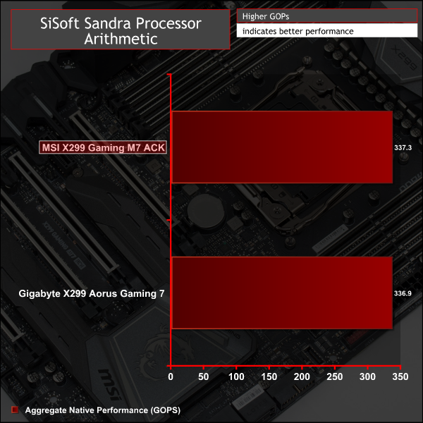 SiSoft Sandra 2017 is a multi-function utility program that supports remote analysis, benchmarking and diagnostic features for PCs, servers, mobile devices and networks. We run the application’s processor arithmetic test to gauge the CPU performance on each tested motherboard.