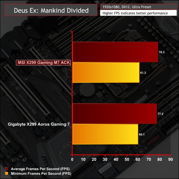 Deus Ex: Mankind Divided is an action role-playing stealth video game released in August 2016. A built-in benchmark utility is included and we test using the Ultra quality preset and the DirectX 12 AP at a 1080p resolution.