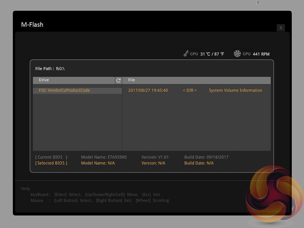 M-Flash forces you to reboot to enter the flashing process is somewhat tedious though in practice all motherboard vendors will eventually reboot multiple times during the flashing process to apply the updates. However, you can’t view any of the M-Flash options or interface without conducting a reboot, whereas most vendors will at least allow you to navigate around in the interface, see what options are available to you and even start the flash, before a reboot is eventually required.