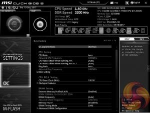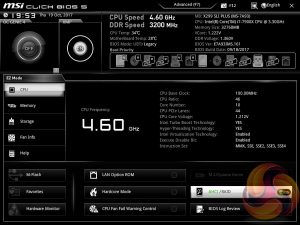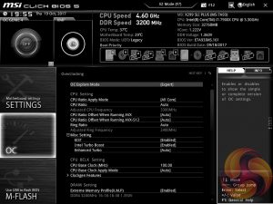 The Game Boost “overclocking button/dial” settings can be toggled from within the UEFI environment. The user simply has to change the Game Boost Function Control to By BIOS Options and the options can be edited in the top left section of the UEFI. In effect this makes the physical Game Boost dial found on higher-end boards is an unnecessary luxury so consumers considering MSI motherboards without Game Boost dials, such as this one, shouldn’t feel short-changed in any way.
