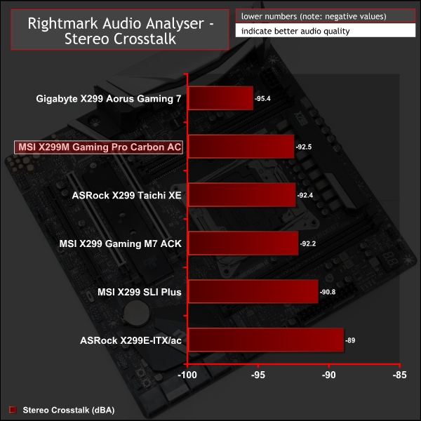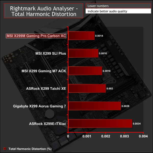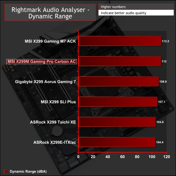 Audio performance was very good, finishing in second for every test out of all motherboards that were benchmarked. 6 Excellent, 1 Very Good and 1 Good rating is standard for the Realtek ALC1220 codec used and the use of a Texas Instruments operational amplifier and high quality audio capacitors brings out the best of that codec.