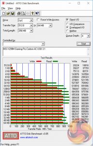 M.2 performance was unrestricted while the M.2 shield did its job in preventing thermal throttling under extended heavy loading. That entailed running the ATTO benchmark three times (almost ten minutes) without a break and then recording the maximum temperature at the end.