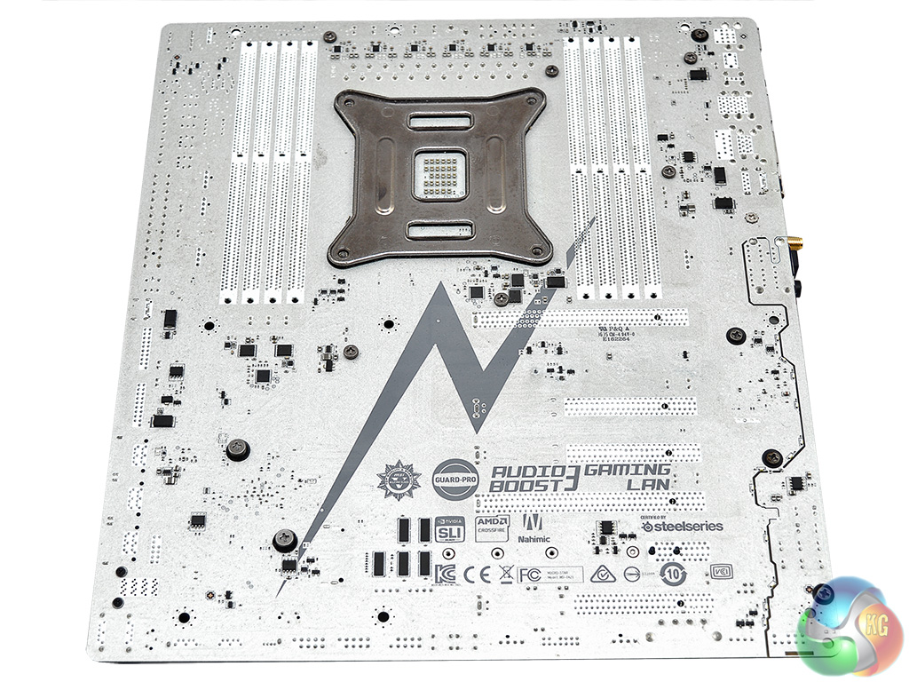 Underneath the MSI motherboard you will find standard Philips-head screws for all heatsinks making cleaning and modification that bit easier to work with. There are no under-board reinforcement plates to speak of but MSI claims the PCB is “Titanium reinforced”, thus shouldn't need additional support anyway.