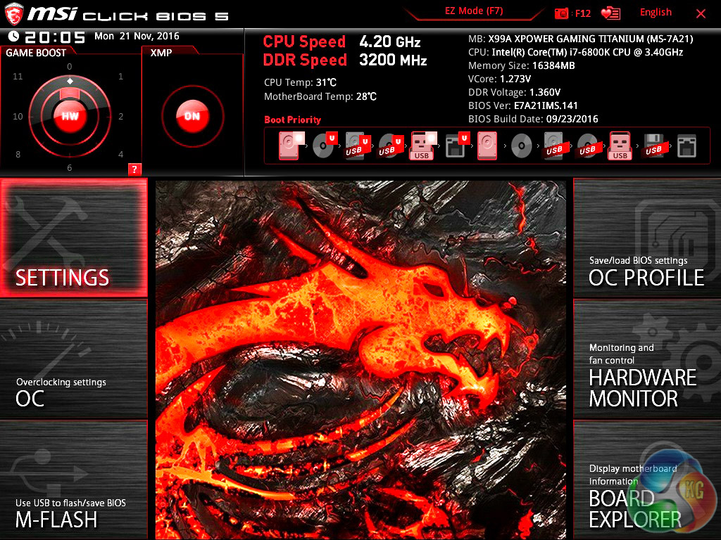 Readers will struggle to spot many functional differences between the UEFI for the X99A XPower Gaming Titanium and the previously reviewed X99A Tomahawk and X99A Godlike Gaming Carbon. That's not a bad thing, mind, since MSI's Click BIOS 5 has stood up well over time and is simple to use.