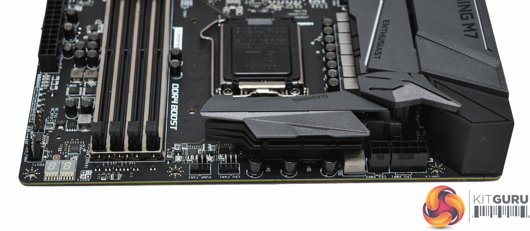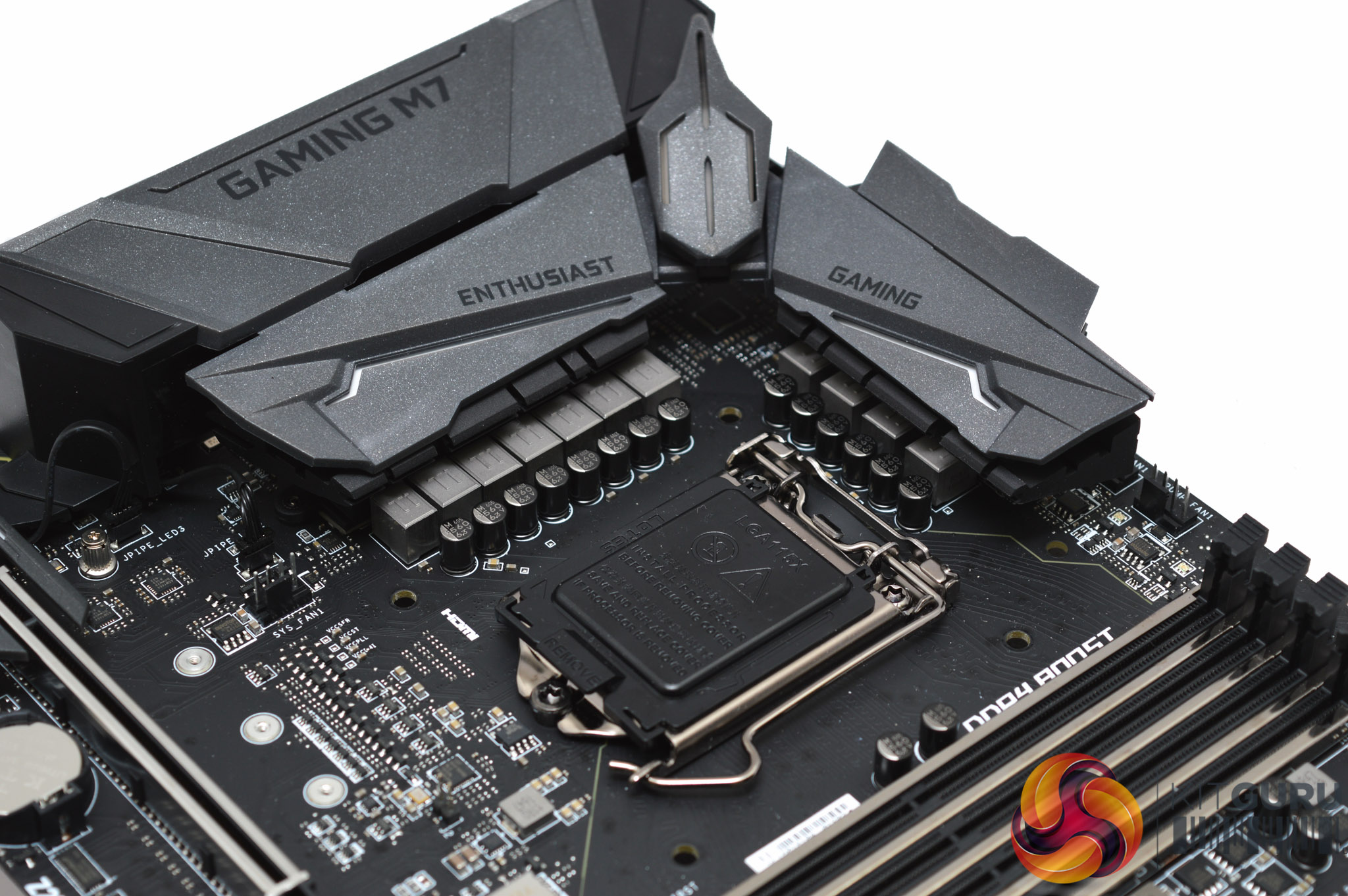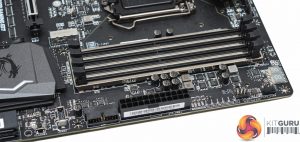 Around the CPU socket MSI implements an 8+2+1 phase VRM, for a total of 11 phases. These are supplied power through an EPS 8-pin and an additional CPU ATX 4-pin power cable for supplementary power when conducting extreme overclocking.