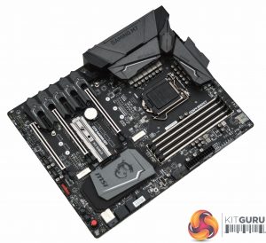 Said RGB lighting is present in the CPU VRM heatsinks, the Rear I/O shroud, at the start of the first 5 PCIe lanes and in the PCH heatsink, as well as the optional 12v G R B header. There is, somewhat unfortunately, a number of red lights present across the board which cannot be changed with the software and these disrupt the aesthetic.