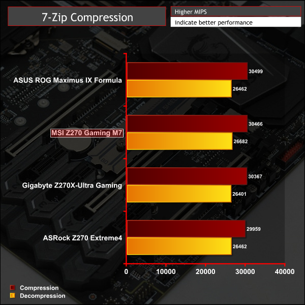 7-Zip is an open source Windows utility for manipulating archives. We measure the Total Rating performance using the built-in benchmark tool. The test stresses all CPU cores to 100% and shows an affinity for memory bandwidth.