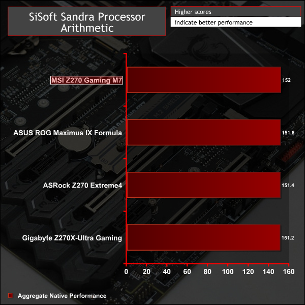 SiSoft Sandra 2016 is a multi-function utility program that supports remote analysis, benchmarking and diagnostic features for PCs, servers, mobile devices and networks. We run the application’s processor arithmetic test to gauge the CPU performance on each tested motherboard.