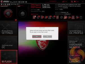 M-Flash forces you to reboot to enter the flashing process which feels a little disruptive though in practice all motherboard vendors will eventually reboot at some stage during the flashing process. However, you can’t view any of the M-Flash options or interface without conducting a reboot, whereas most vendors will allow you to poodle around in the interface, see what options are available to you and even start the flash, before a reboot is eventually required.