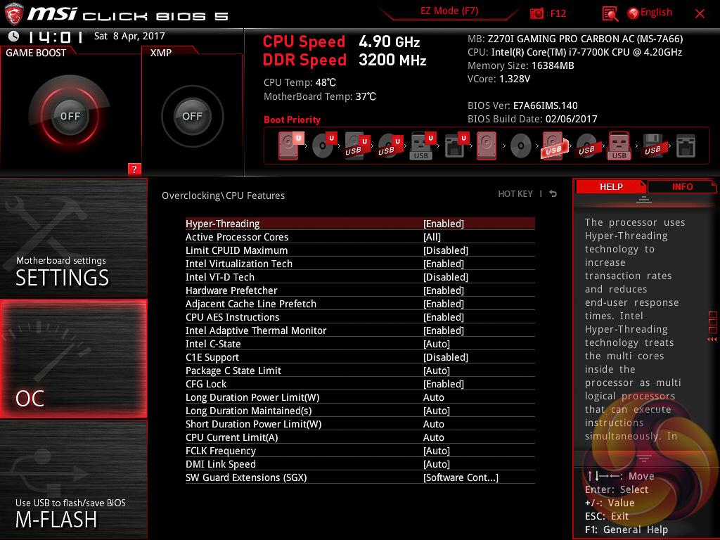 The UEFI with the MSI Z270i Gaming Pro Carbon is well refined and overall Click BIOS 5 is still a solid UEFI implementation that has no significant flaws.