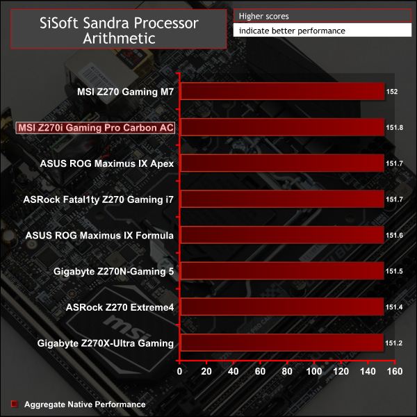 SiSoft Sandra 2016 is a multi-function utility program that supports remote analysis, benchmarking and diagnostic features for PCs, servers, mobile devices and networks. We run the application’s processor arithmetic test to gauge the CPU performance on each tested motherboard.