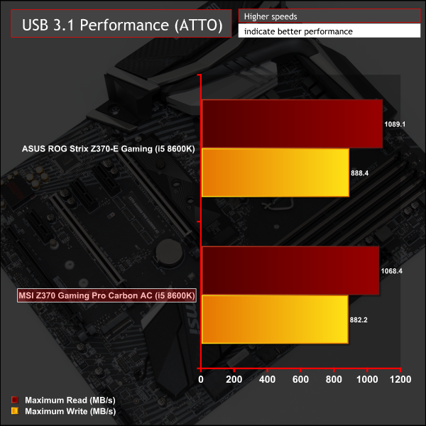 USB 3.0 and 3.1 performance is typical and revealed no anomalies, we saw similar numbers on Z270.