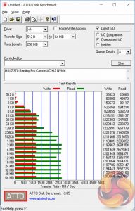 The ATTO disk benchmark is a Windows-based utility for testing storage performance of any storage drive or controller. We use the default benchmark setup.
