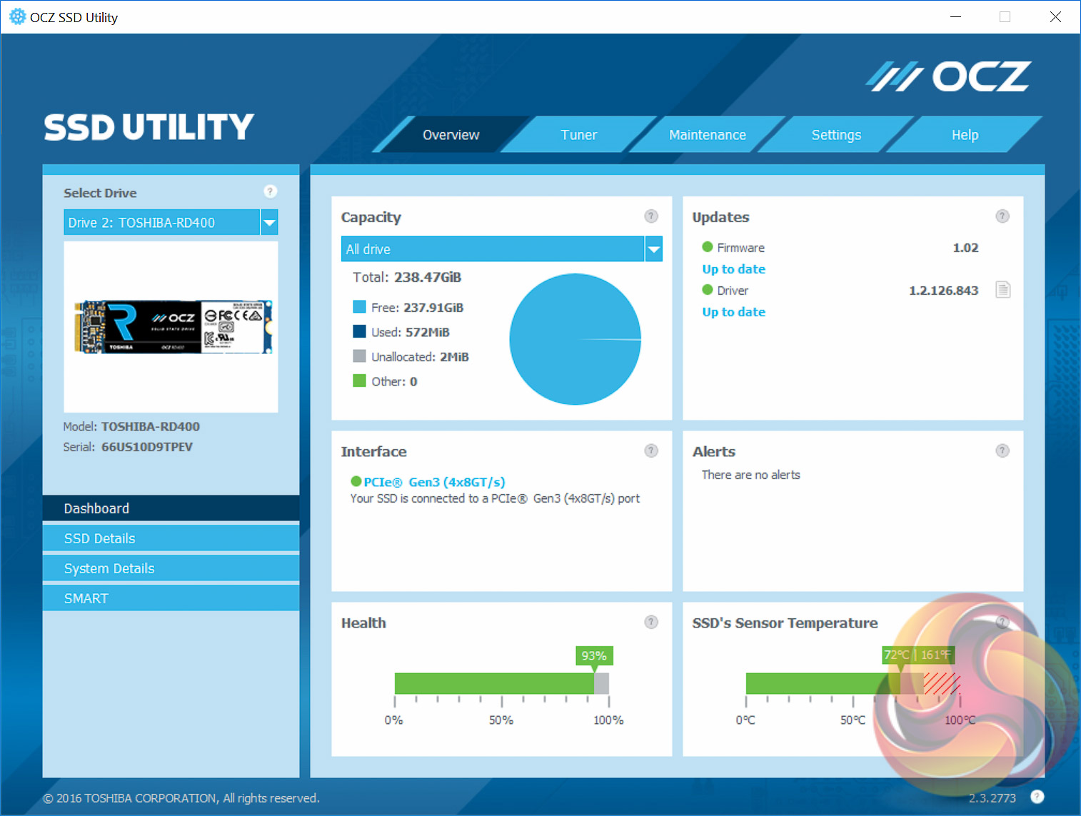 For M.2 testing we use a Toshiba OCZ RD400 256GB M.2 PCIe NVMe SSD.