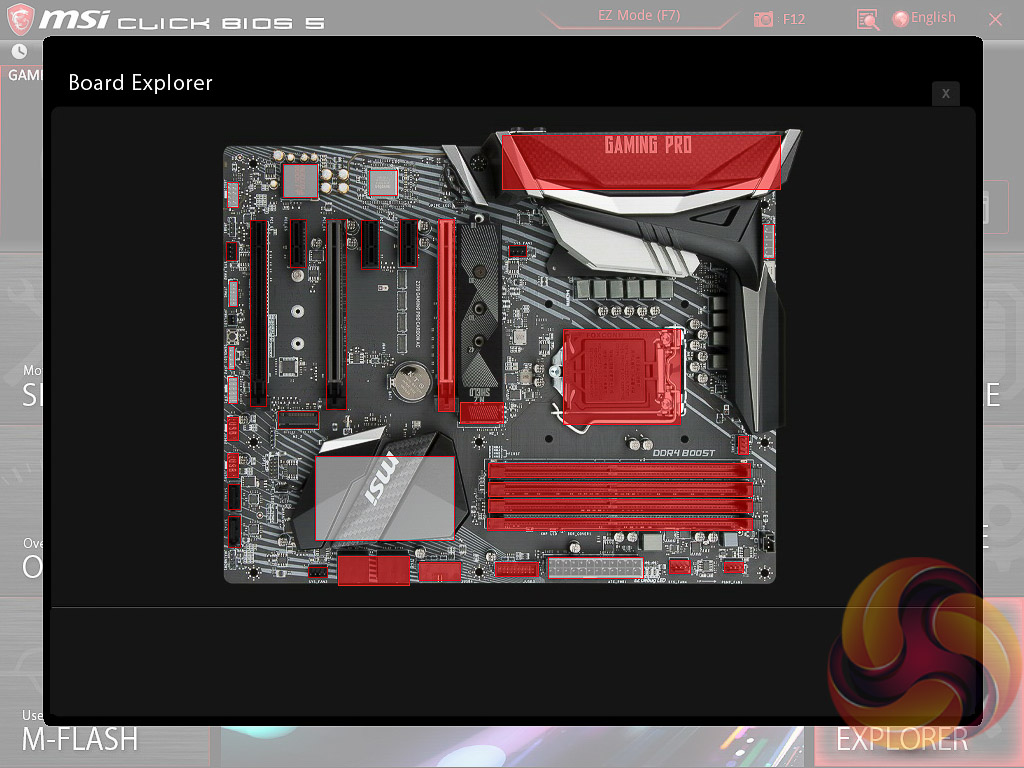 The last two tiles of the MSI UEFI refer to visual tools. Board Explorer is a visual interface for seeing what is connected to the various sections of the motherboard and some information about those connected entities. Hardware Monitor has more practical use in that it’s the primary method of changing fan profiles within the UEFI environment for each of the six fan headers.