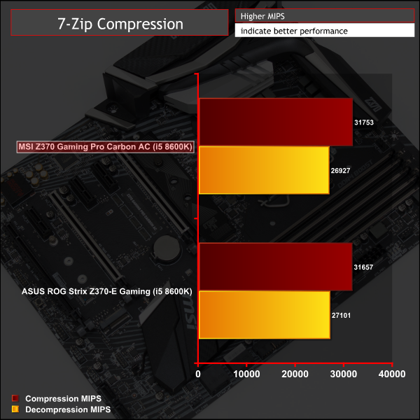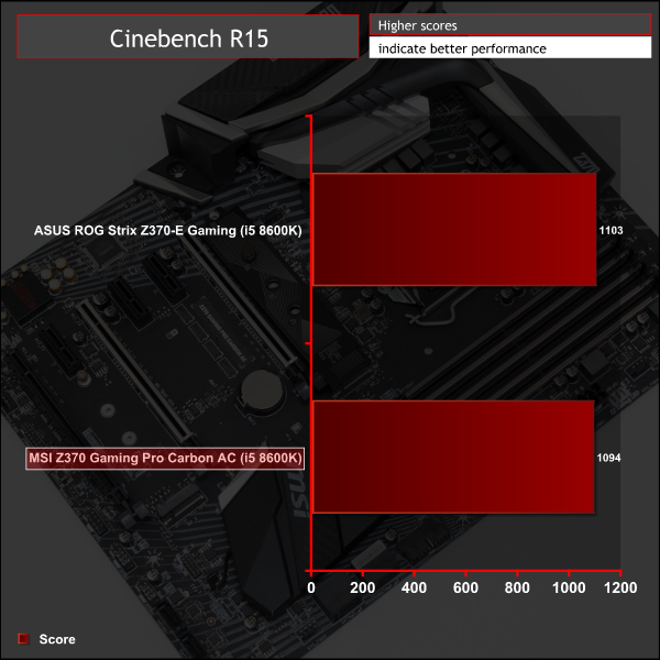 CPU performance is surprisingly potent with Intel's new 6-core i5 8600K. There may be no Hyper-Threading on offer with the i5 but the numbers still look good thanks to the extra two cores and high turbo frequency of 4.3GHz. There is minimal variation between motherboards on test too, which is what we'd expect to observe.